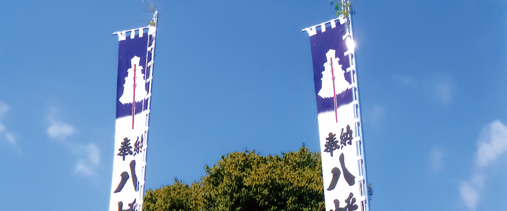 参拝者などから奉納された通常サイズののぼり旗用です。